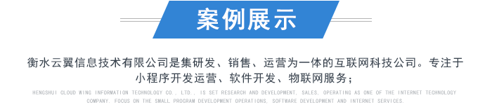 衡水云翼信息技術有限公司是集研發(fā)、銷售、運營為一體的互聯網科技公司。專注于小程序開發(fā)運營、軟件開發(fā)、物聯網服務。
